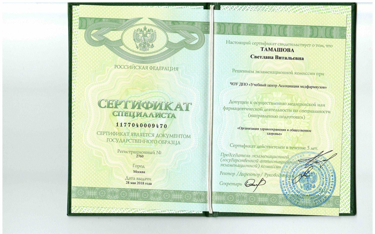 - В какой области специализируется Тамашова Светлана Витальевна?