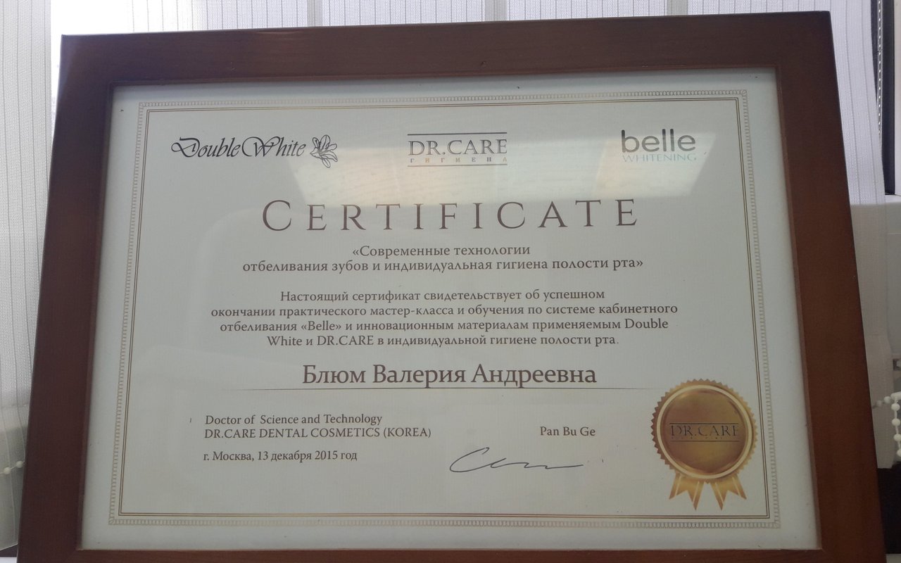 2015г. - лекционно-практический курс Kerr «Одноэтапная методика восстановления жевательной группы зубов. Звуковая активация композита как залог успеха». 2015г. - повышение квалификации в ГБУЗ МО МОНИКИ. 2015г. - мастер-класс и обучение по системе отбеливания «Belle” и инновационным материалам, применяемым Double White и Dr.Care в индивидуальной гигиене полости рта. 2011г. - повышение квалификации в НОУ «Учебно-консультационный стоматологический центр»