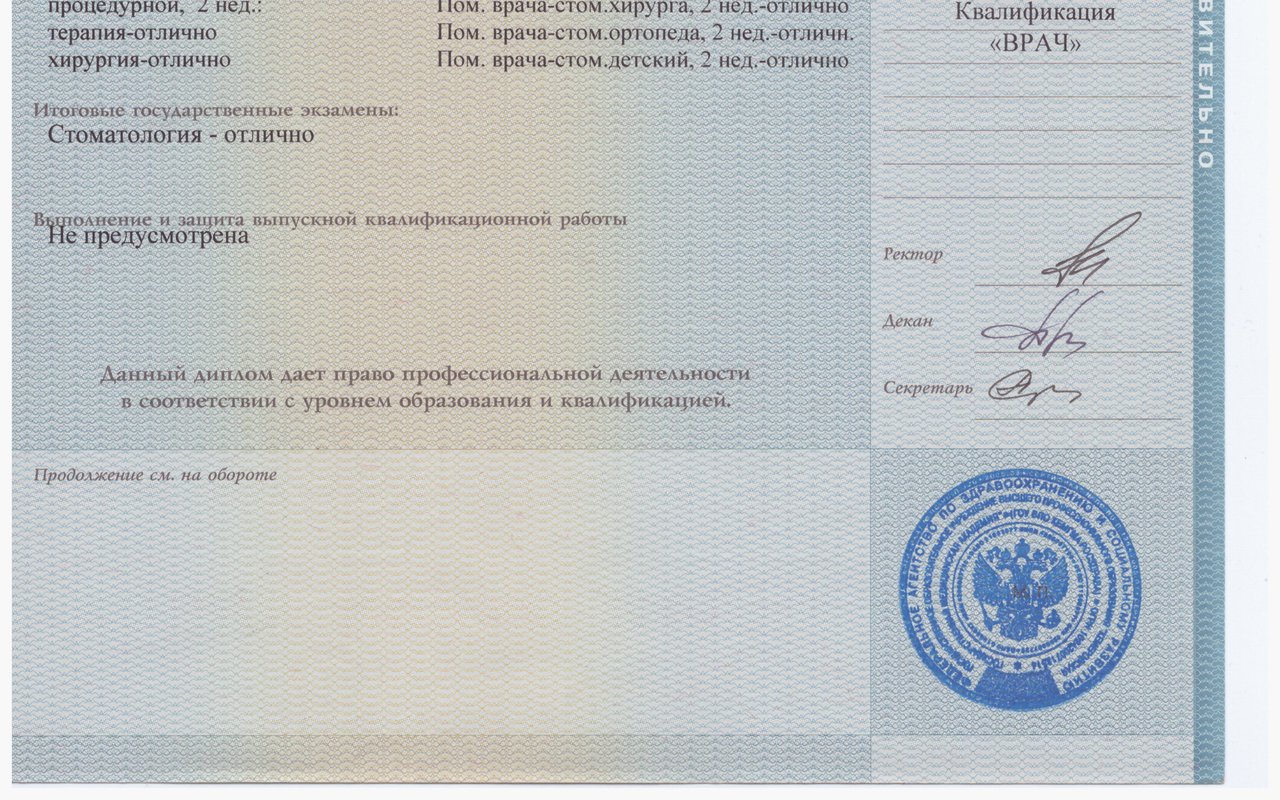 Закончила Кемеровскую государственную медицинскую академию в 2011 году, там же интернатуру по стоматологии общей практики в 2012 году