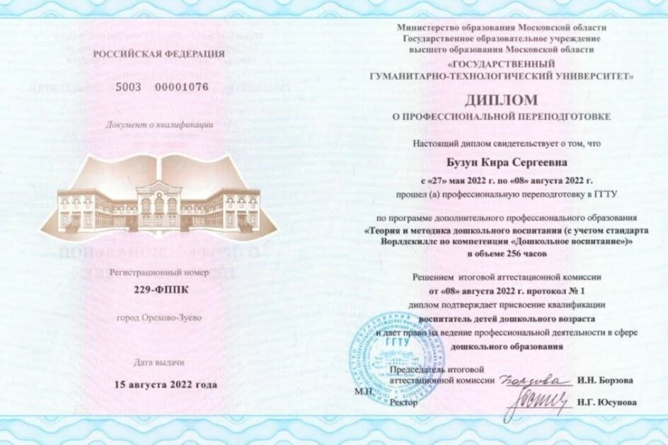 - Как долго Бузун Кира Сергеевна работает по специальности?