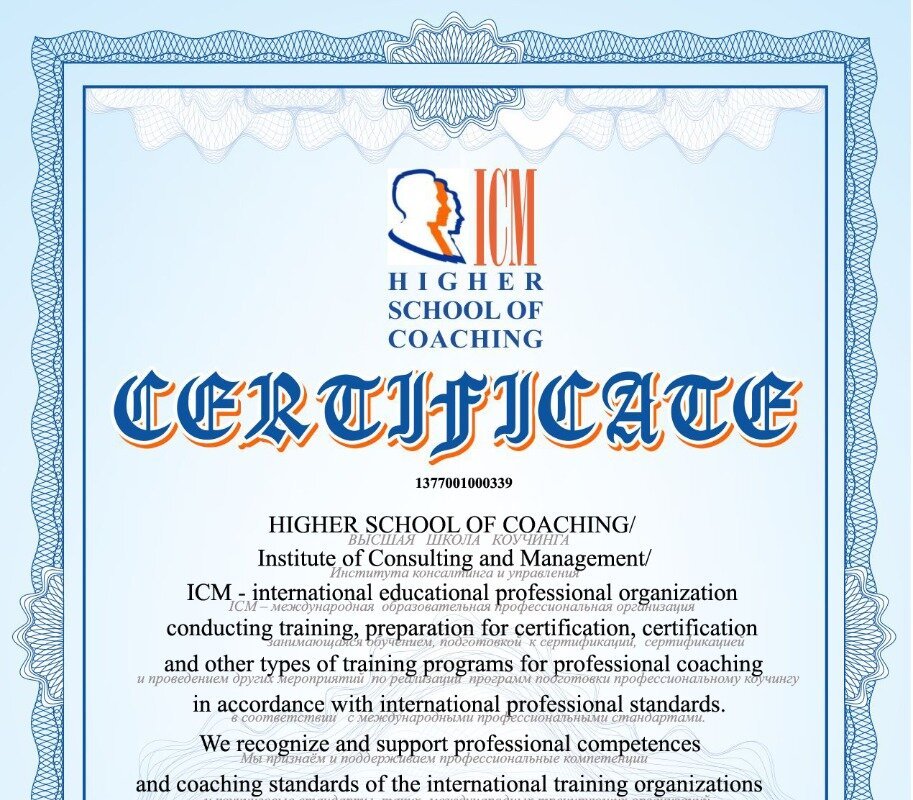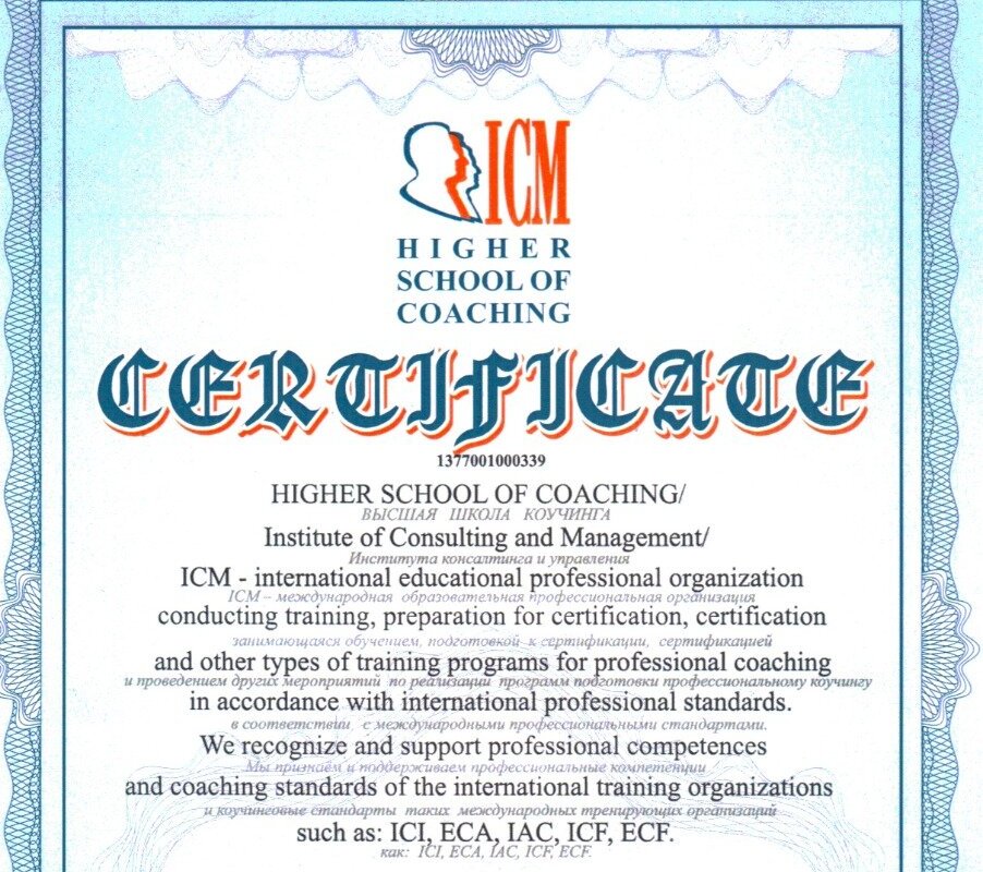 Член «Ассоциации профессиональных коучей ICM»