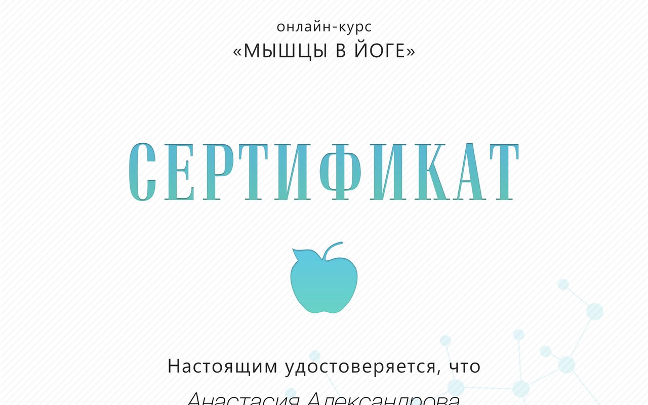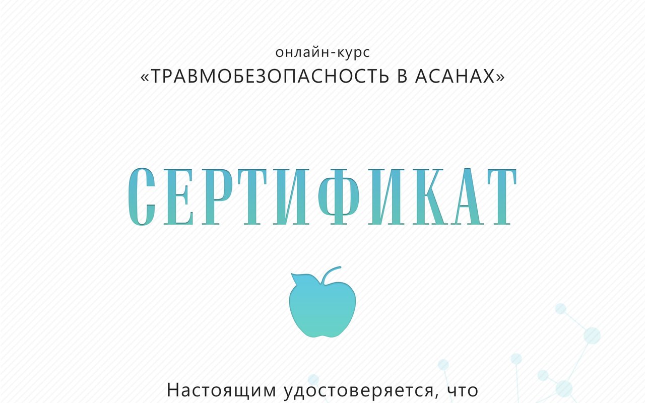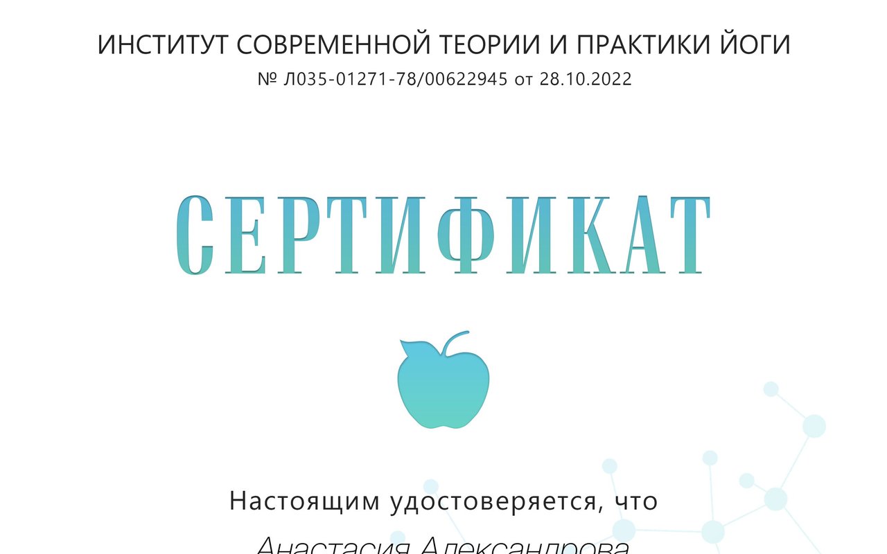 Особенно хочу отметить внимательное и чуткое отношение: на каждом занятии Анастасия интересовалась моим самочувствием, подбирала упражнения в соответствии с моим состоянием и помогала настроиться на позитивный лад. Атмосфера на занятиях всегда была спокойная и поддерживающая. Анастасия профессионал своего дела!