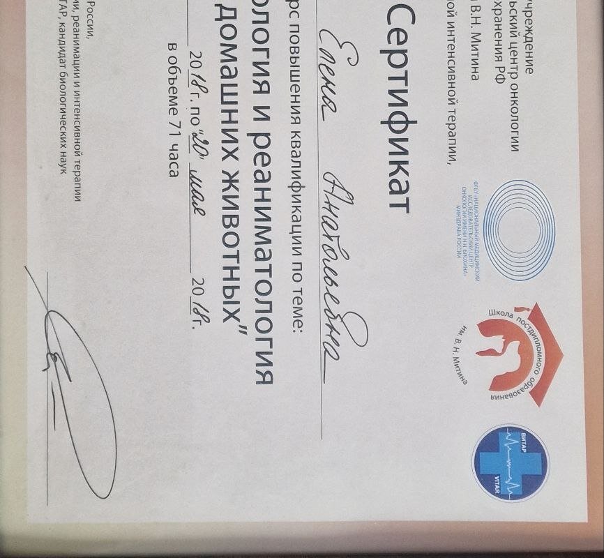 Как специалист-гастроэнтеролог просто ни о чем. Из сертификатов в общем доступе по гастро у нее только вебинар, в таком случае уровень знаний ее меня не удивляет. Но когда шла на прием понадеялась просто на хорошие отзывы. Во первых у кошки тифлит, хроническая энтеропатия, сухой стул, периодическая рвота. На что «врач» мне дала ответ что «Вы не пациент гастроэнтеролога». (При том все врачи которые видели наше узи и симптомы отпр авляли нас к гастро). Во вторых, на сайте клиники где врач работает заявляется, что она еще и диетолог(тоже видимо по вебинарам). Мне пришлось объяснять врачу, что кошке с кислой мочой и оксалатами в почках нельзя корма с DL метионином так как они еще больше закисляют мочу. Что нельзя в связи со 2 степенью ХПН сажать полностью на ренальный корм, так как он слишком сильно занизит белок для ее степени болезни. Касаемо того, что стул сухой – «врач» посоветовала давать больше воды. Это не работает, а работает неферментированная клетчатка, о которой «специалист» очевидно не знает. В ее советах была только ферментированная (подорожник), и отруби- которые кошки не едят из за их сильного запаха. В итоге так как «врач» не знала что же с кошкой начала рассказывать что у нее вирусная лейкемия кошек (на которую мы ранее получали отрицательный результат анализа, и как нам объясняли другие ветеринары будь у нее этот диагноз кошка бы сгорела за пару месяцев, а не жила бы так 4 года с симптомами, а в сумме ей вообще 5 лет уже). Парадокс был в том, что «специалист» начала нам в связи со своей теорией назначать анализы на лейкемию, но не зная как они называются правильно- позвала молодого ветеринара, чтоб та ей подсказала. Хочу тут напомнить что стаж врача 18 лет. Так же «врач» списывала энтеропатию на то, что кошка перенесла вирусный энтерит (короновирус кошек), но как позже выяснилось уже с грамотным (настоящим) гастроэнетрологом короновирус есть у 90% кошек, и не дает такой картины на узи.