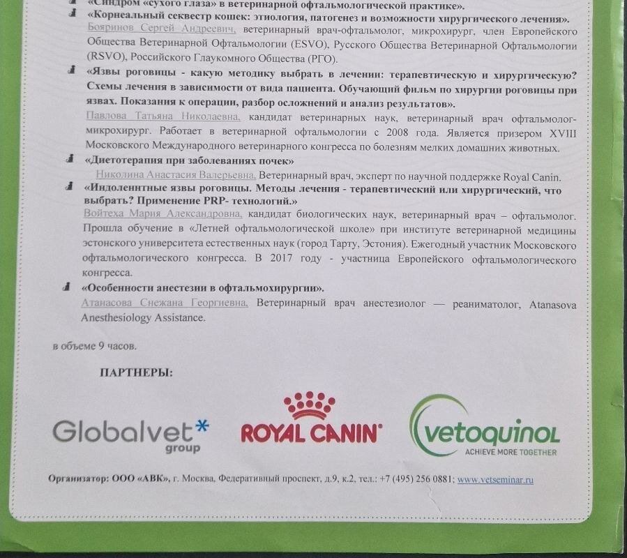 - Регулярное посещение мастер-классов, семинаров, конгрессов по ветеринарии