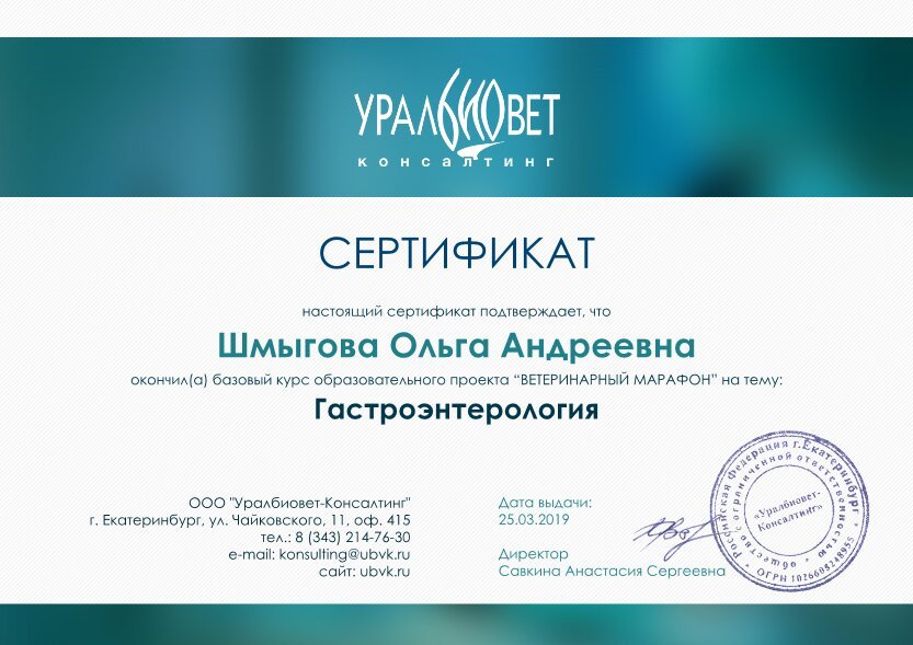 Отзывы о ветеринаре Ольге Андреевне Шмыговой