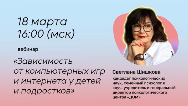 Поговорим о зависимости от компьютерных игр и интернета у детей и подростков! 18 марта 2026 года в 16:00 по московскому времени в прямом эфире кандидат психологических наук, семейный психолог и коуч, учредитель и генеральный директор психологического центра «ДОМ» Шишкова Светлана Юлиановна поможет разобраться в причинах формирования игровой и интернет-зависимости, научит родителей распознавать признаки проблемного поведения, предложит эффективные методы профилактики и коррекции этого состояния. Запись будет доступна в нашем сообществе, поэто… — Читать дальше