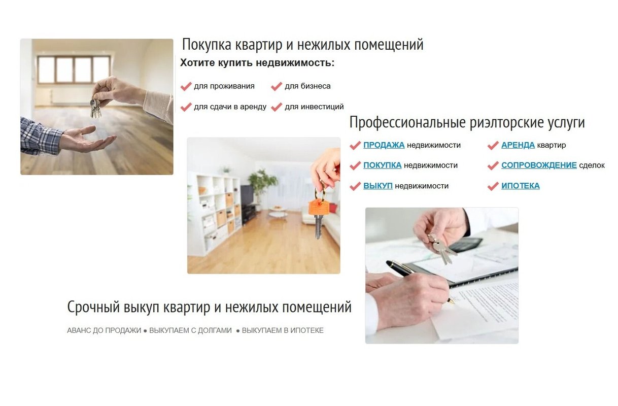 Кроме того, специалисты агентства занимаются выкупом недвижимости. Здесь помогут в сложных ситуациях, когда возникли проблемы с оплатой ипотеки, нужно в короткие сроки продать жилое или нежилое помещение. Агентство выкупит недвижимость, даже если она находится в залоге, ипотеке или имеются долги в жилищно-коммунальных службах, если прописаны несколько человек, независимо от состояния и наличия ремонта.
