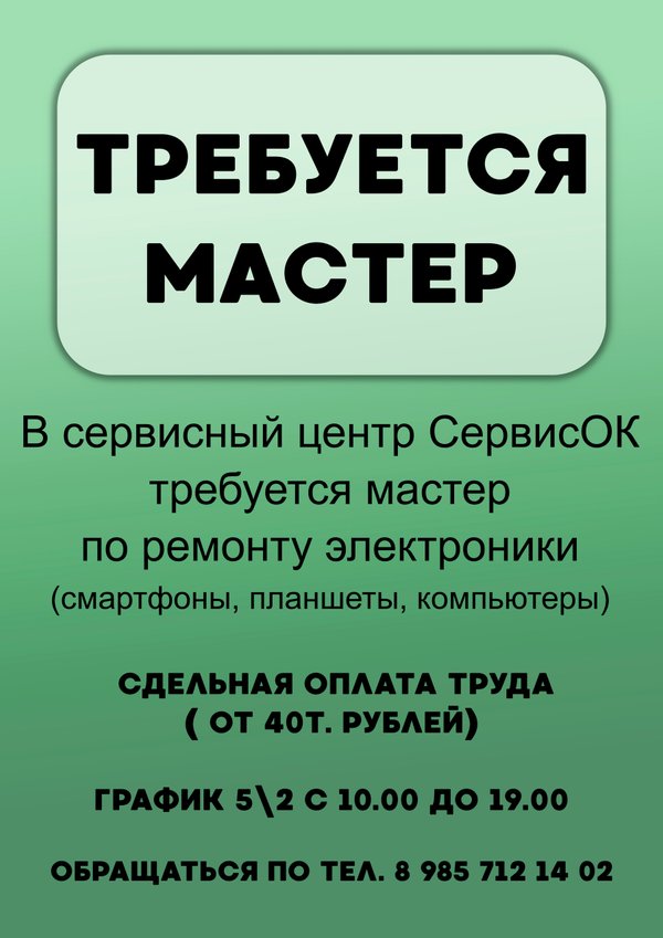 Дорогие друзья, в наш сервис требуется сотрудник! По время вопросам обращайтесь по номеру или пишите в сообщение группы.