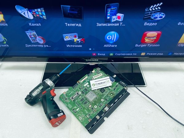 Заменён блок питания на ЖК телевизоре Samsung Наши контакты: или. г.Серпухов, Ворошилова 57, 2й этаж. Вход со стороны Пиццы 24. Рядом с ВСК страхование. Работаем ежедневно с 10.00 – 19.00