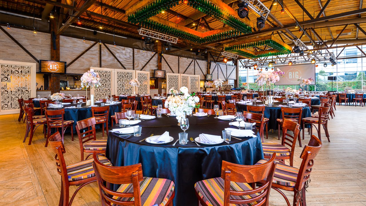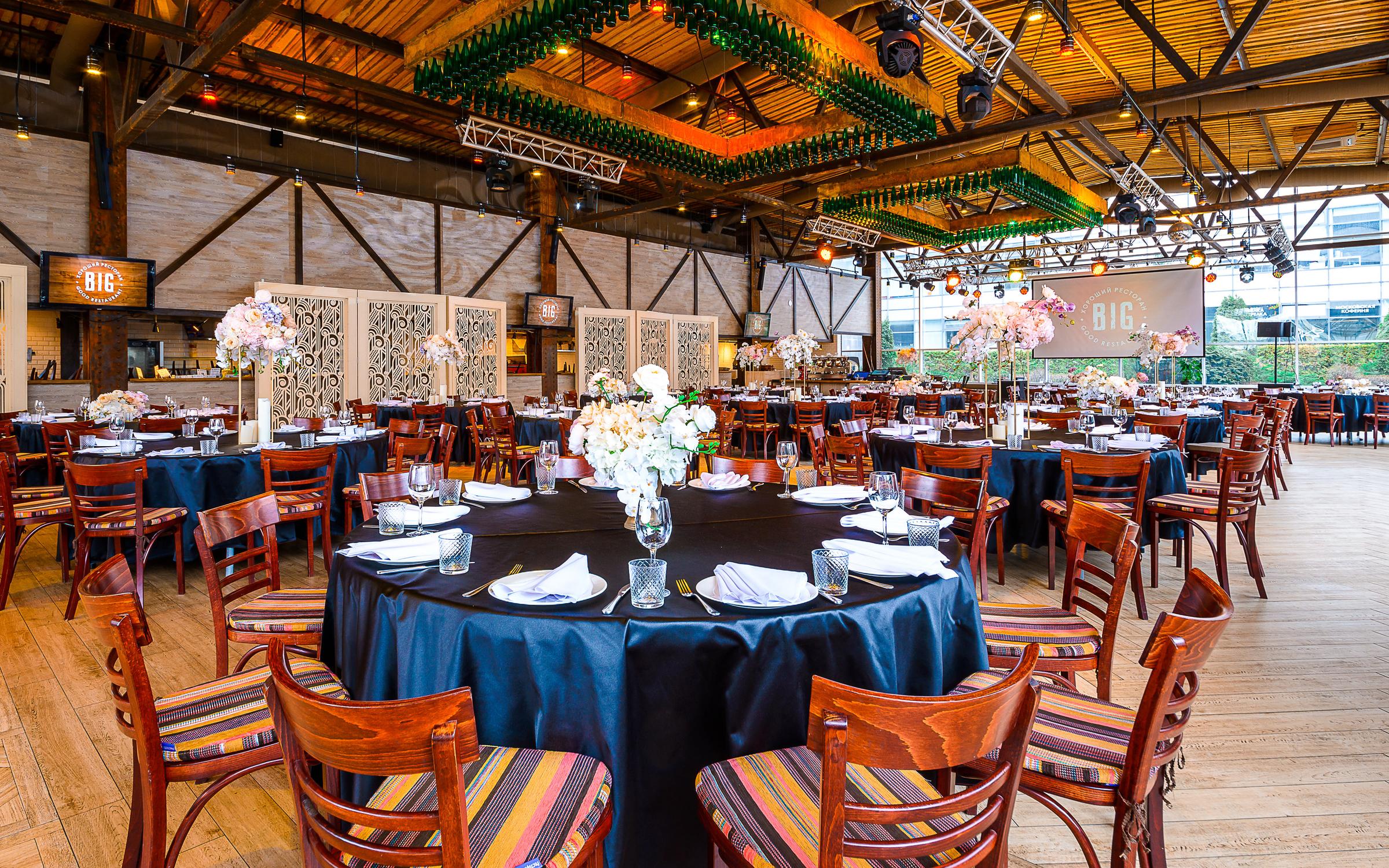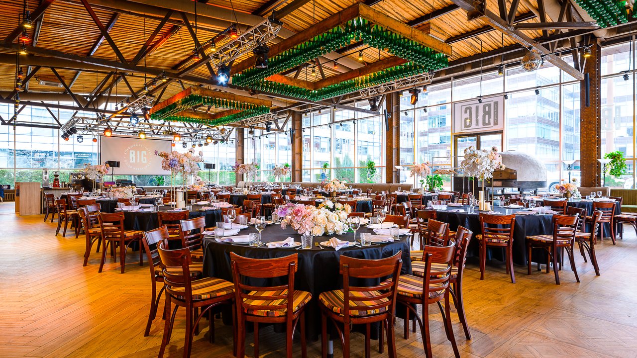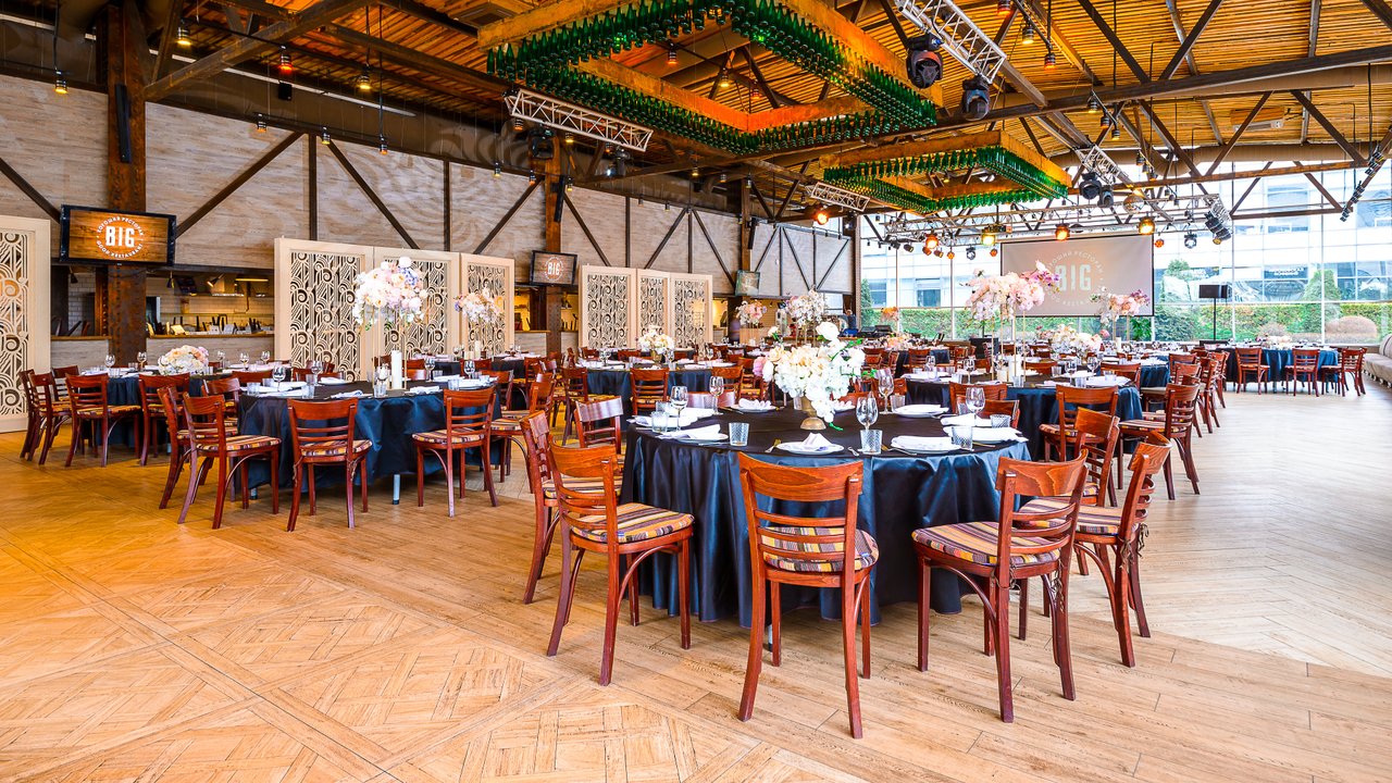 Кроме семейного обеда, деловой встречи и романтического свидания, в BIG можно организовать банкет по любому случаю: корпоративное мероприятие, показ, конференция, день рождения, юбилей, свадьба. Вместимость с банкетной рассадкой рассчитана на 250 персон, с фуршетной – на 500, с театральной — до 800 персон. Площадка полностью оснащена световым и звуковым оборудованием, сценой, плазмой и большим экраном.