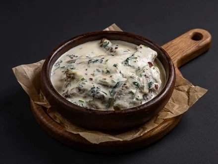 Цыпленок чкмерули на кеци Сеть грузинских ресторанов mimi