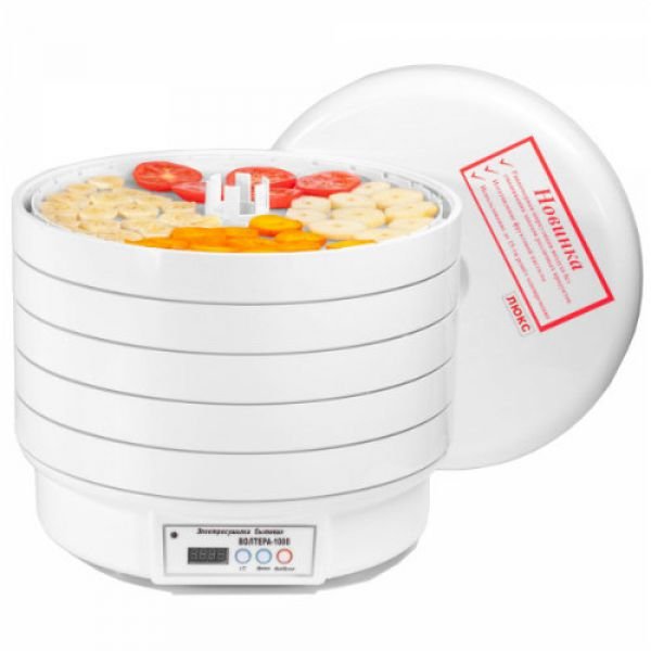 Сушилка ВолТера 1000 Люкс / С таймером и электронным блоком управления / Электросушилка для фруктов, овощей, ягод и грибов / Цвет белый ВолТера
