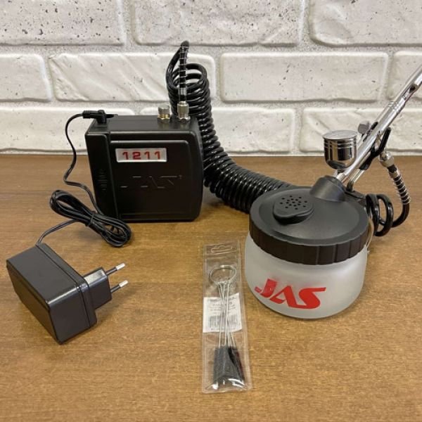 Универсальный набор для аэрографии Jas 1931 / Аэрограф Jas 1113 / Компрессор Jas 1211 / Шланг Jas 1401 / Очиститель Jas 1601 / Комплект ершиков Jas