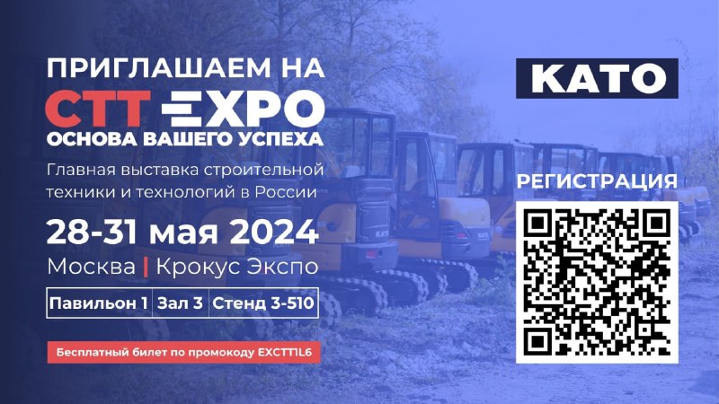 ️ С 28 по 31 мая ищите нас на выставке в Крокус Экспо! Мы представим японские мини-экскаваторы KATO, с которыми можно будет ознакомиться вживую.