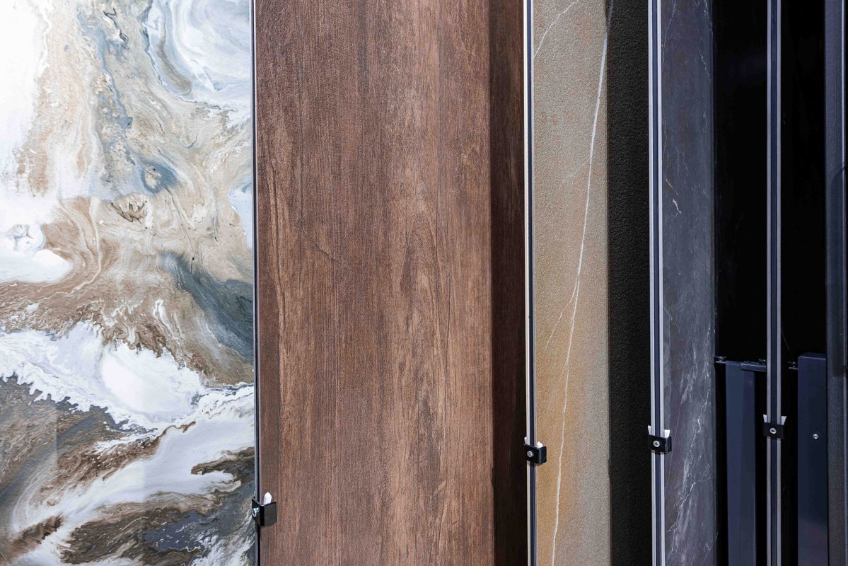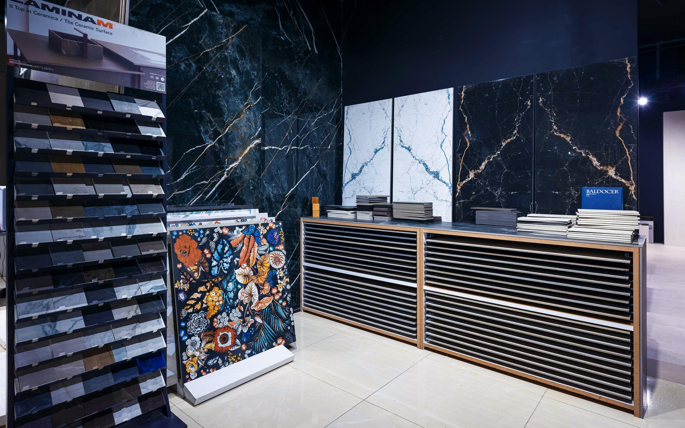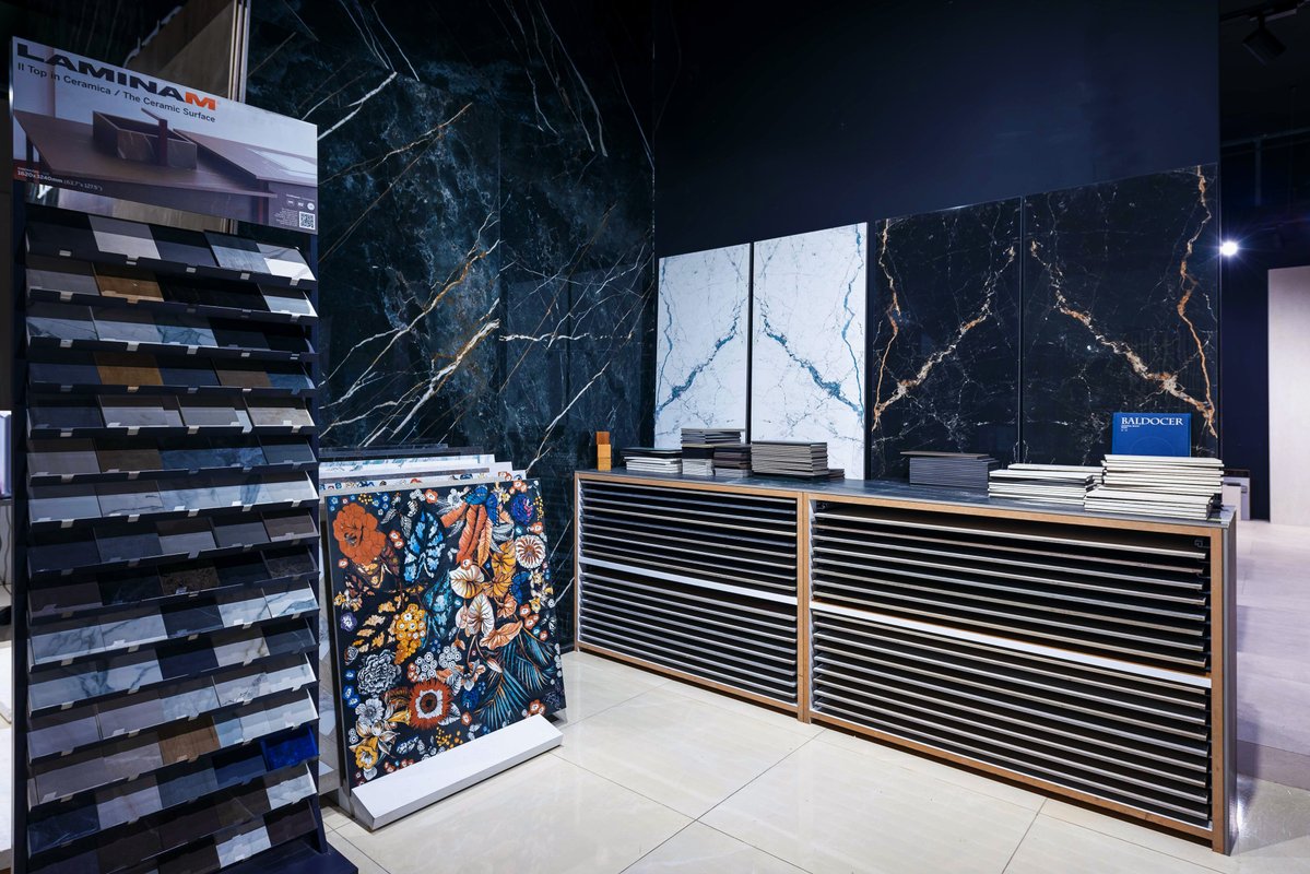 — Современный шоурум с образцами материала и изделий