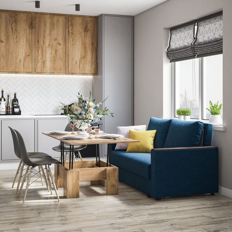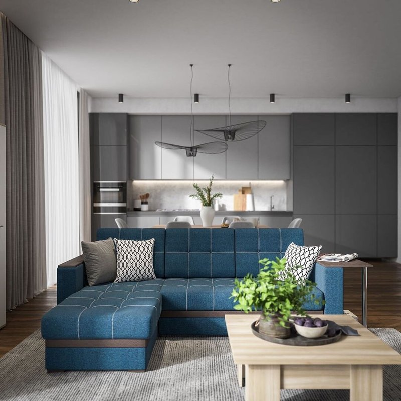 Уголок понравился сразу — компактный и удобный. Сиденья мягкие, ткань приятная, обивка легко чистится. Немного неудобно, что оплата только полной суммой, без возможности частичного расчёта. В остальном мебель замечательная: места стало больше, и теперь ужин всей семьёй стал ещё комфортнее. Покупкой довольна.