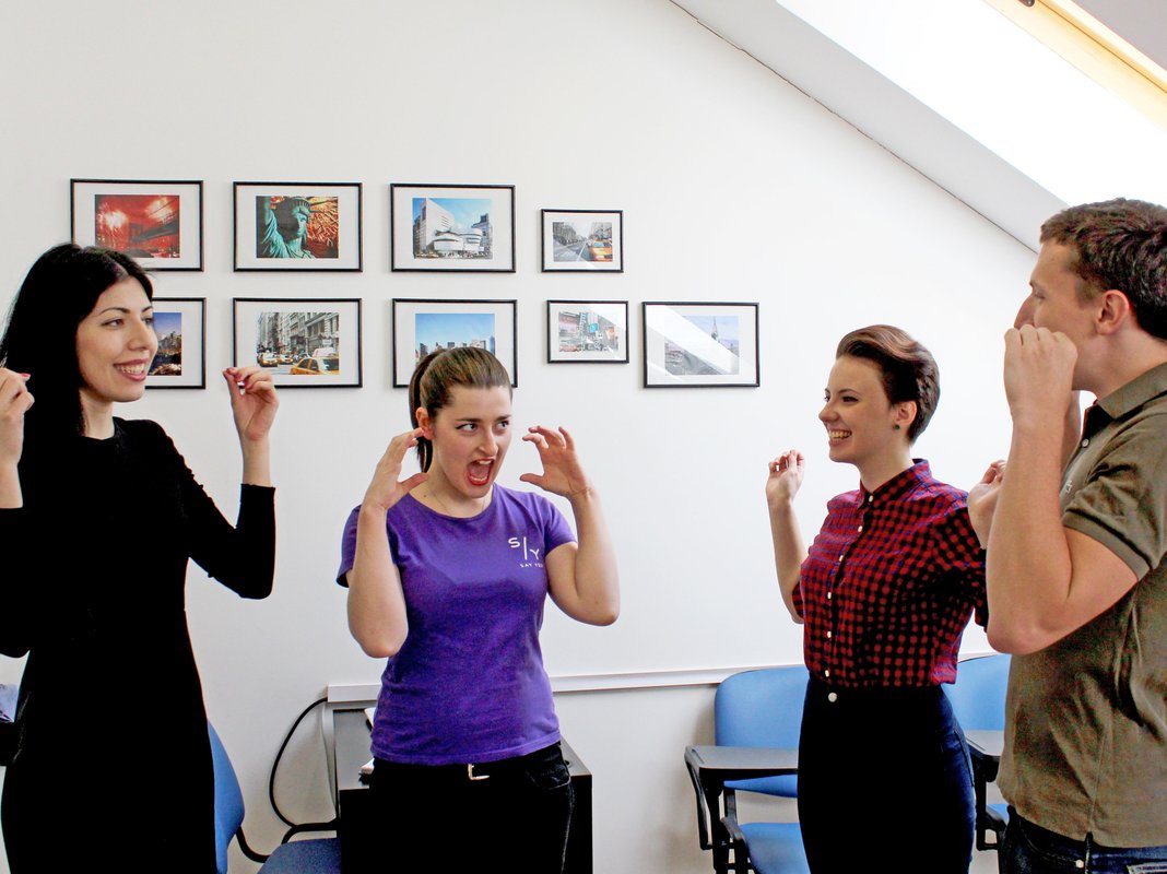 Занятия всегда всегда проходят весело. Чтоб вы понимали, мы не сидим за партами, не занимаемся переводом, не зубрим и не делаем упражнения (это все делается дома!). В классе мы разговариваем друг с другом, обсуждаем пройденные темы, отрабатываем самые разговорные фразы и сленг. Помимо этого, наш учитель всегда что-нибудь придумывает), например, устраивает квизы, придумывает игры, устраивает нам коммуникативный батл с другими группами, мы даже поем иногда))