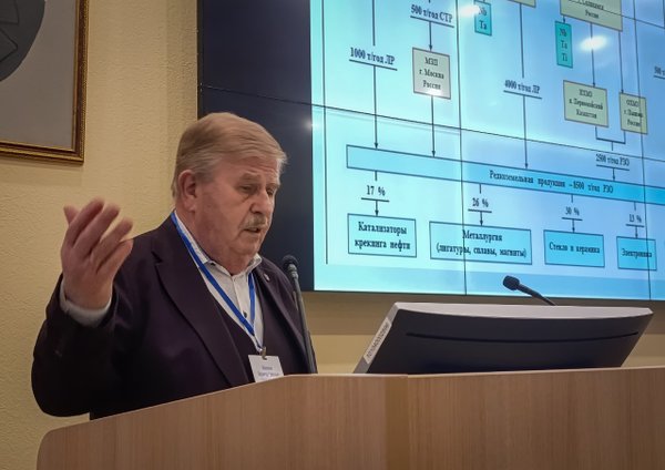 алугин. Продолжается начатый вчера на панельной дискуссии разговор о добыче и переработке редкоземельных элементов в Арктике. Владимир Маслобоев рассказывает об эффективных технологиях извлечения редкоземельных элементов из природного и техногенного сырья.
