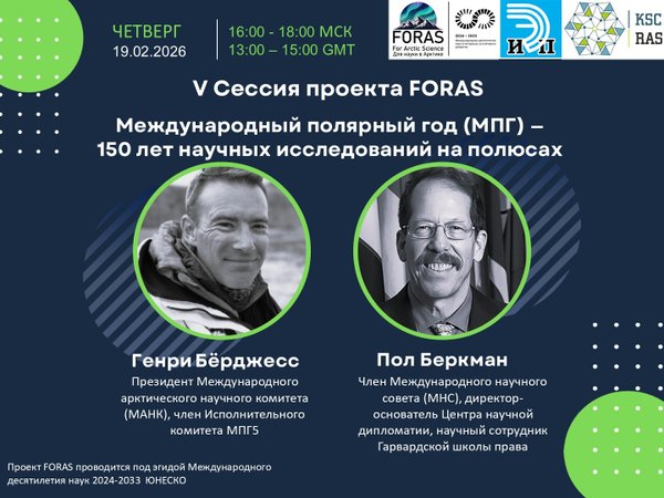 еждународного научного совета, основатель и президент Центра научной дипломатии Пол Беркман обратился к истории МПГ и рассмотрел происходящие в рамках программы процессы научной дипломатии с концептуальной позиции, объясняя возможности нахождения непростого баланса национальных и общечеловеческих интересов. 21 мая, в День полярника, состоится следующая сессия на тему Международного полярного года. Чтобы не пропустить новые события проекта FORAS, заглядывайте на его страницу, а если не успели принять участие в сессии, смотрите ее запись в нашей группе!