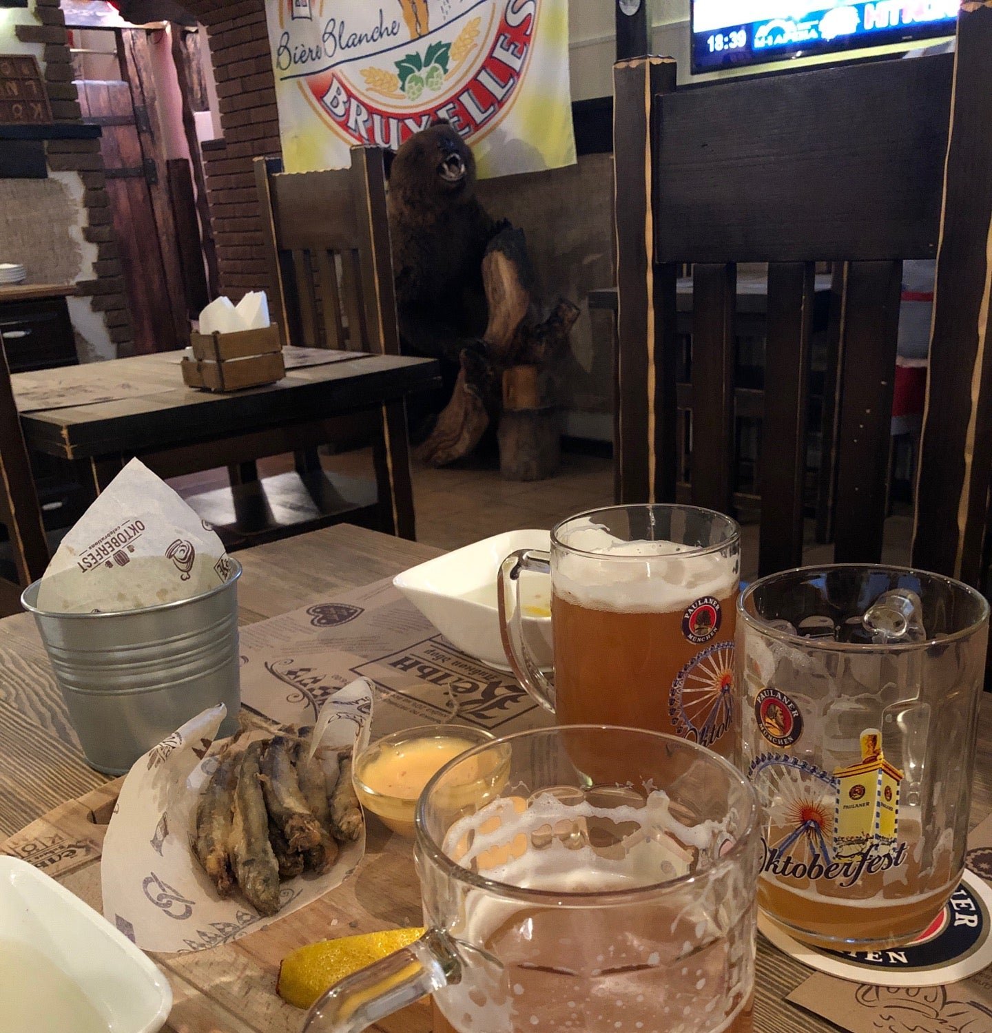 В истинных пивных традициях для вас приготовили разнообразное меню с обширной пивной картой и всевозможными снеками, выгодно дополняющими пенный напиток. Здесь можно встретиться с друзьями под негромкую музыку и в целом хорошо провести время. А для фанатов спорта проводятся трансляции матчей.