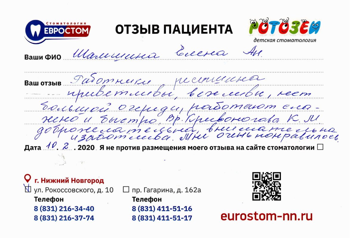 Благодарю за прекрасное профессиональное обслуживание по лечению зубов в стоматологической клинике Аквилио в г. Заволжье. Персональное сбасибо доктору Малкову и его ассистенке, а также администратору Валерии.