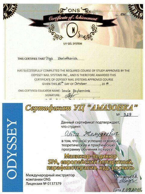 2015 — Маникюр-педикюр spa, классический, аппаратный, парафинотерапия, худ.роспись, Учебный центр ''Амазонка''ONS
