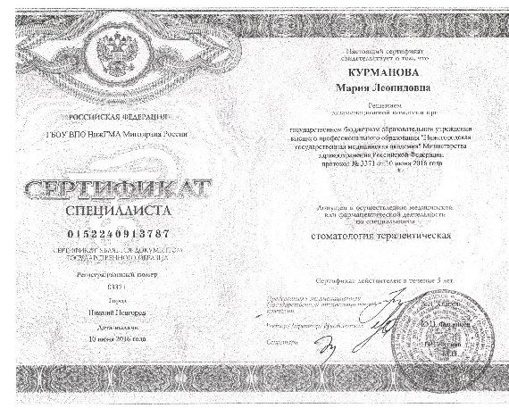 2016 — Приволжский исследовательский медицинский университет (стоматология терапевтическая)