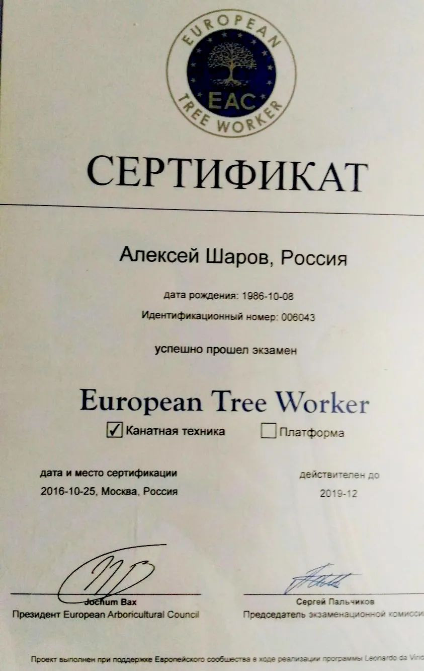 2016 — Учебный центр «БИОТА» (г. Нижний Новгород), специальность – арборист