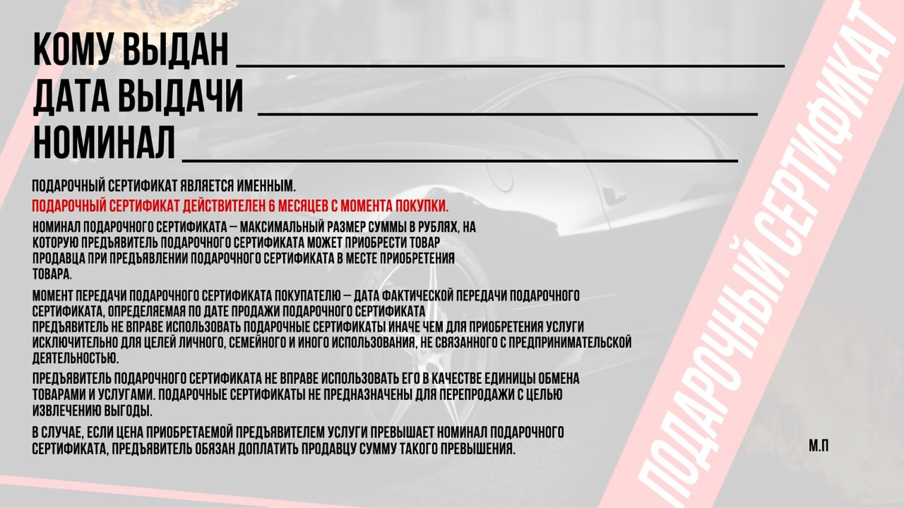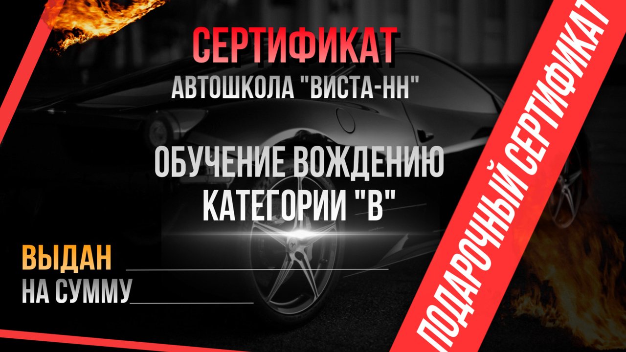 Подарочный сертификат на обучение вождению на категорию "В"