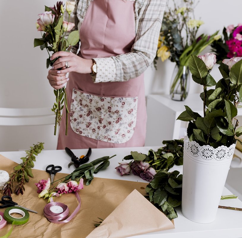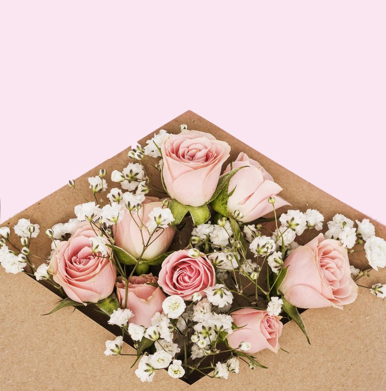 Сборный букет с французской и кустовой розой в стильном оформлении.