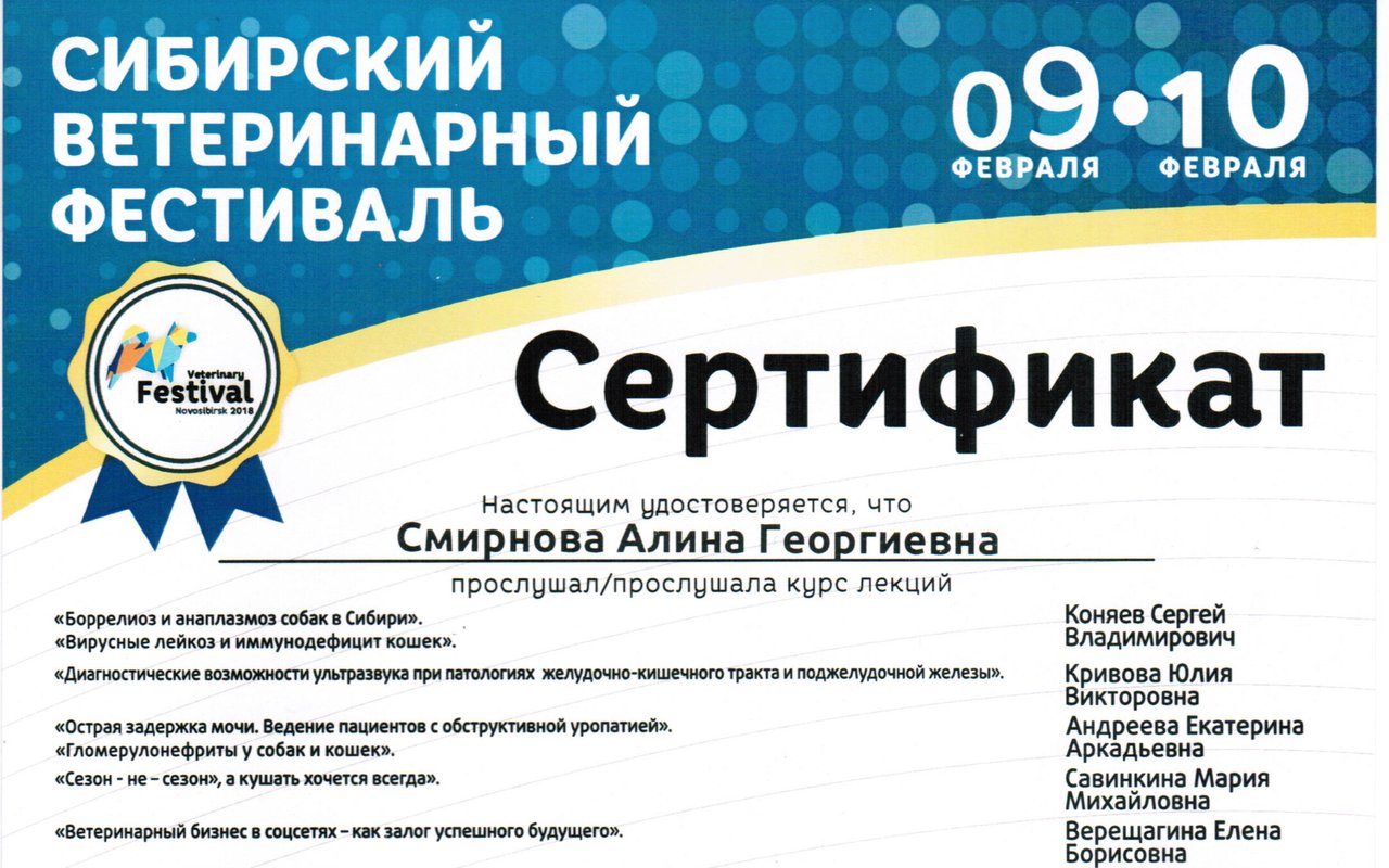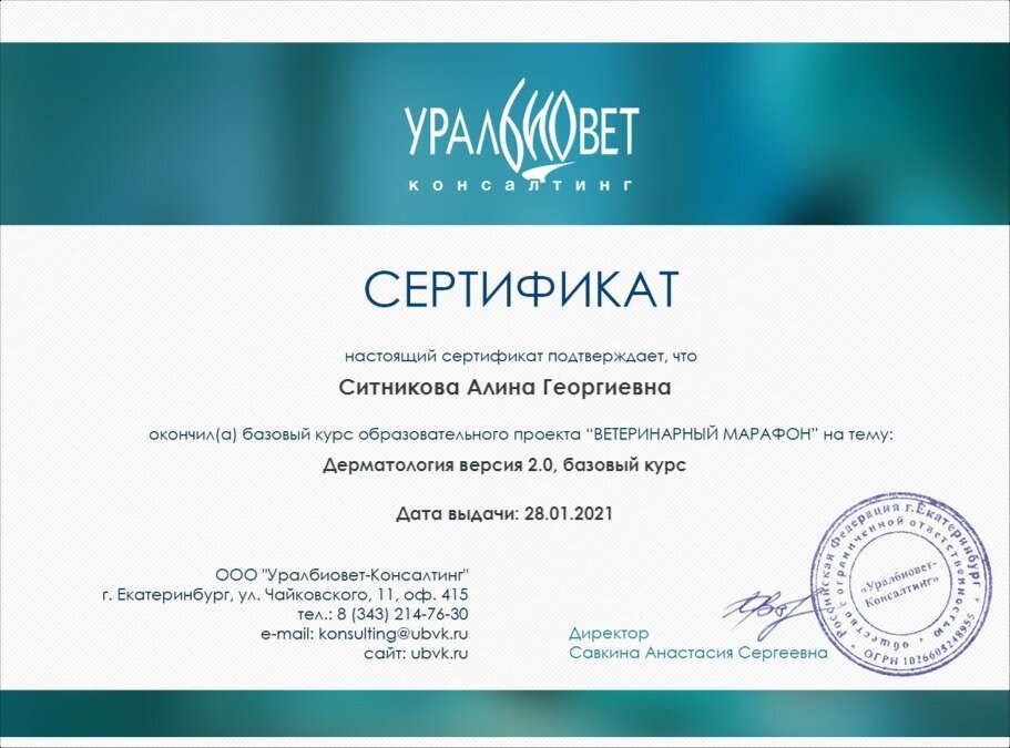 Отзывы о ветеринаре Алине Георгиевне Ситниковой