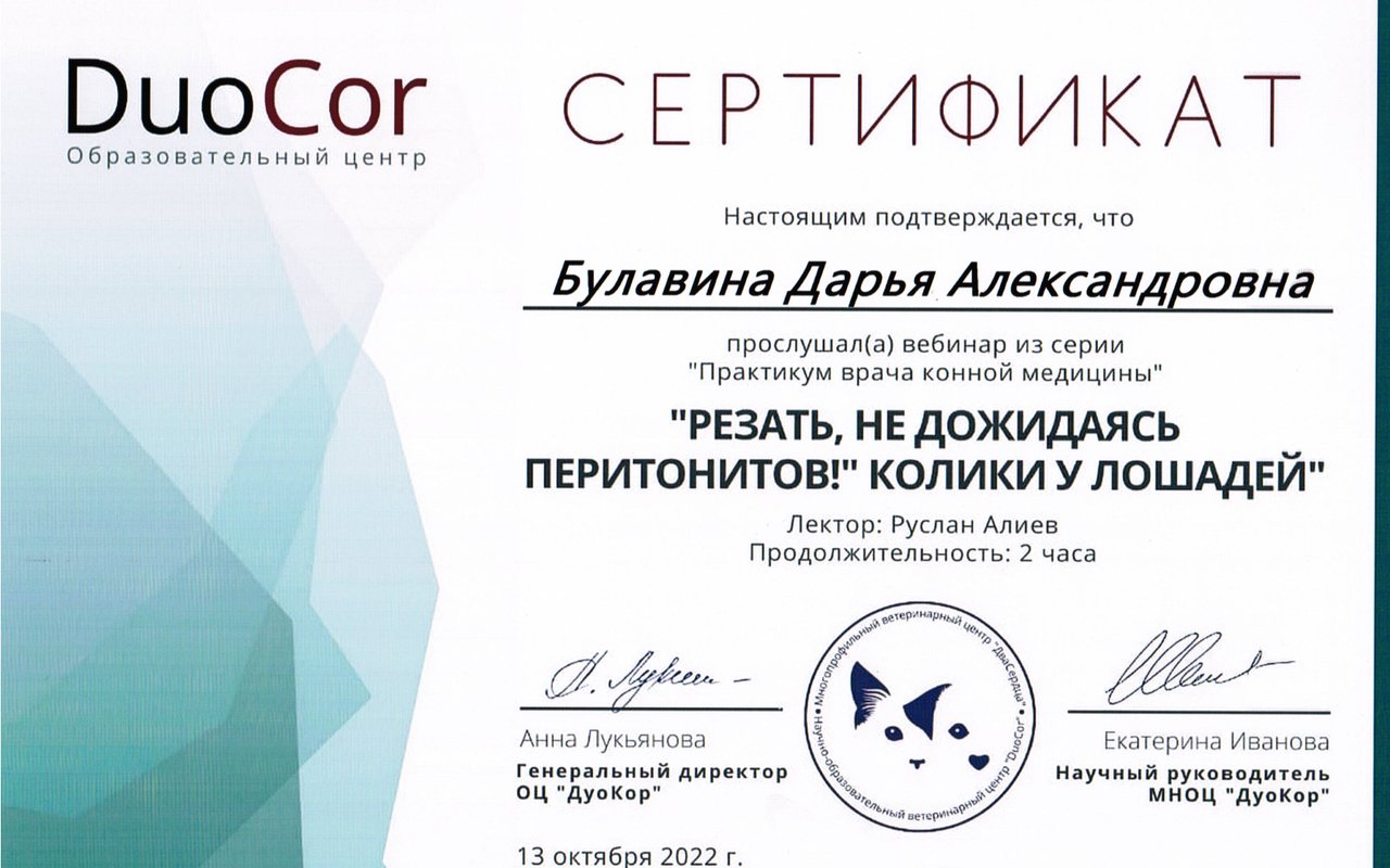 Отзывы о ветеринаре Дарье Александровне Булавиной