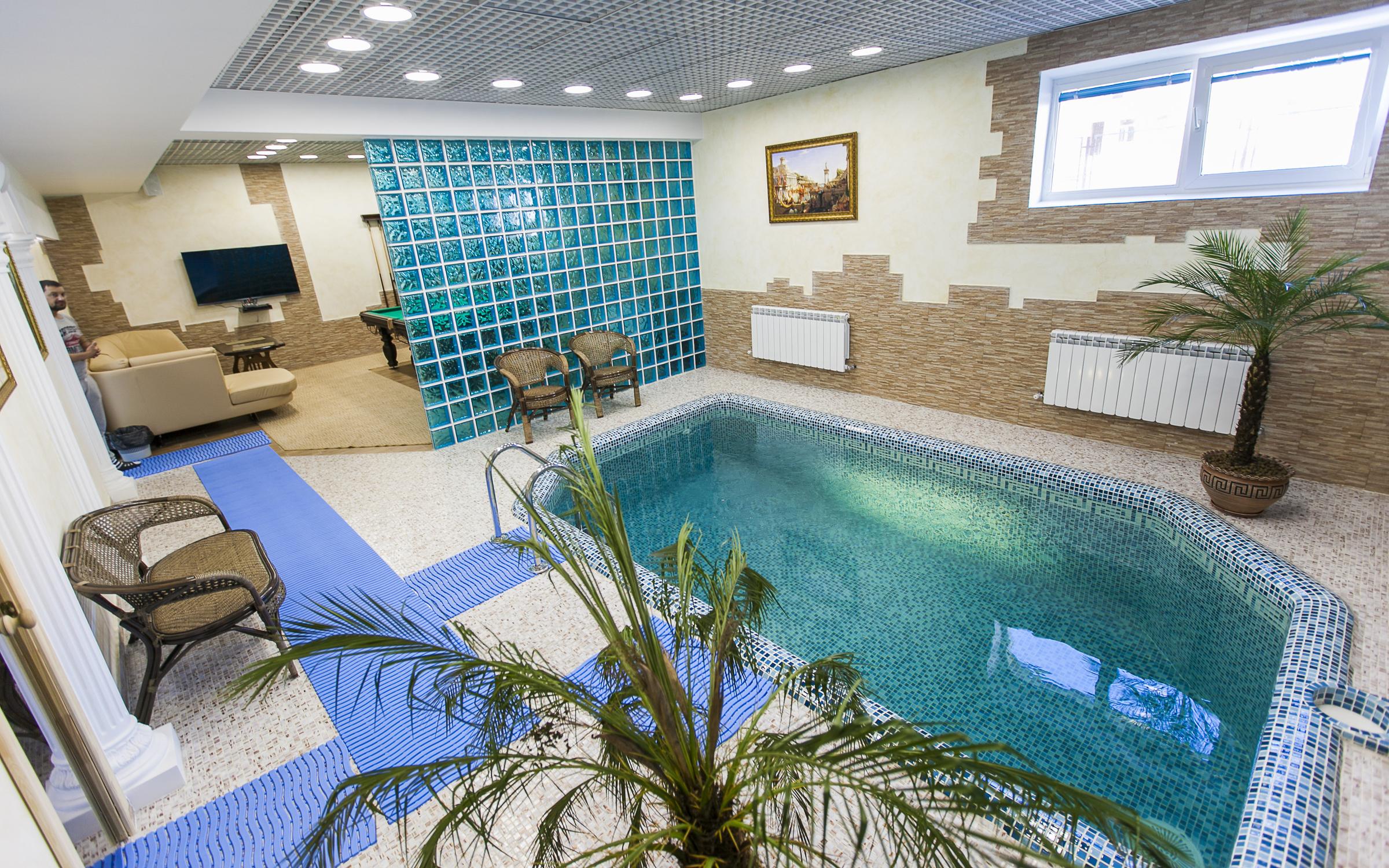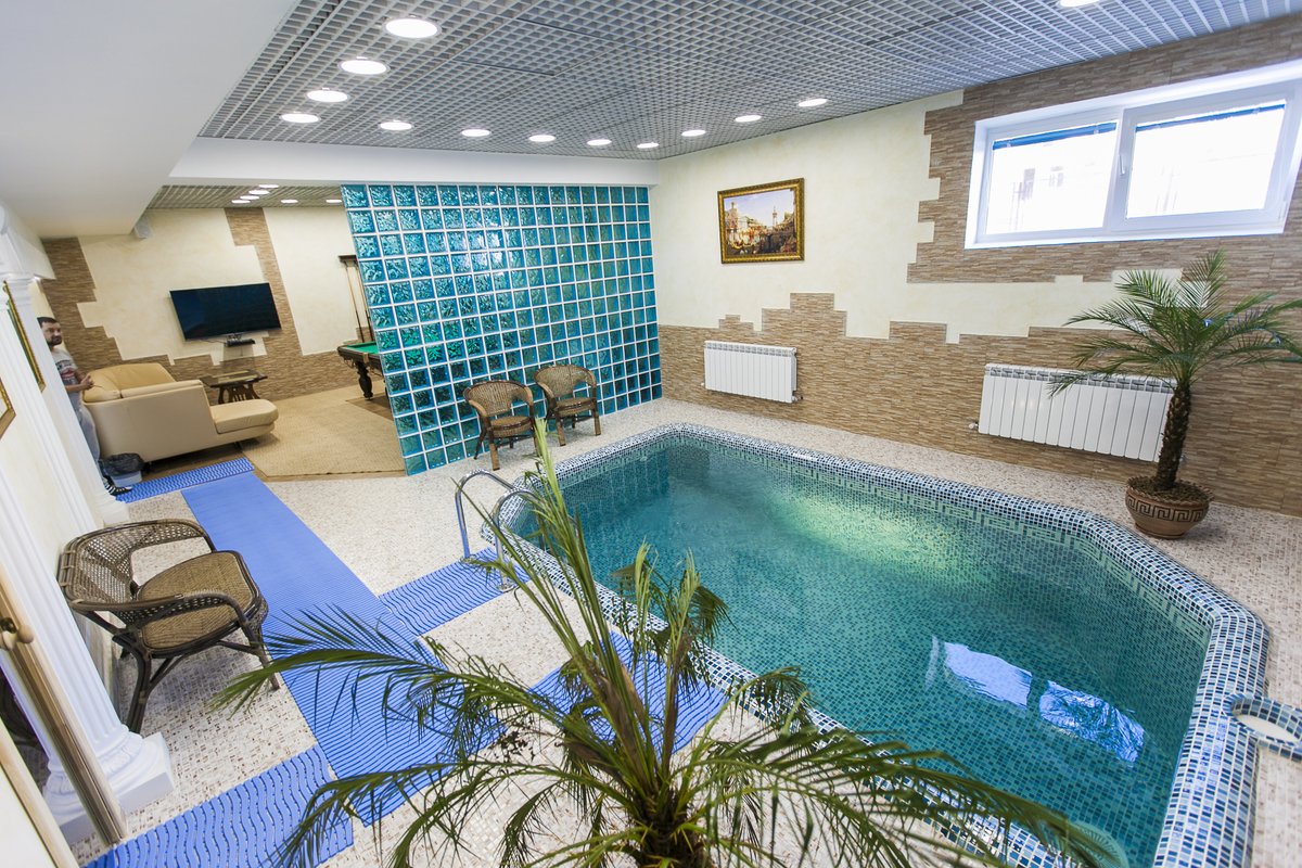 Чтобы ваш отдых был максимально комфортным, вы можете заказать массаж, выбрать ароматные веники для создания неповторимой банной атмосферы, обратиться к помощи опытного банщика. В перерывах между заходами в парилку к вашим услугам караоке, бильярдные столы, комната отдыха. Здесь также есть бассейн, гидромассаж.