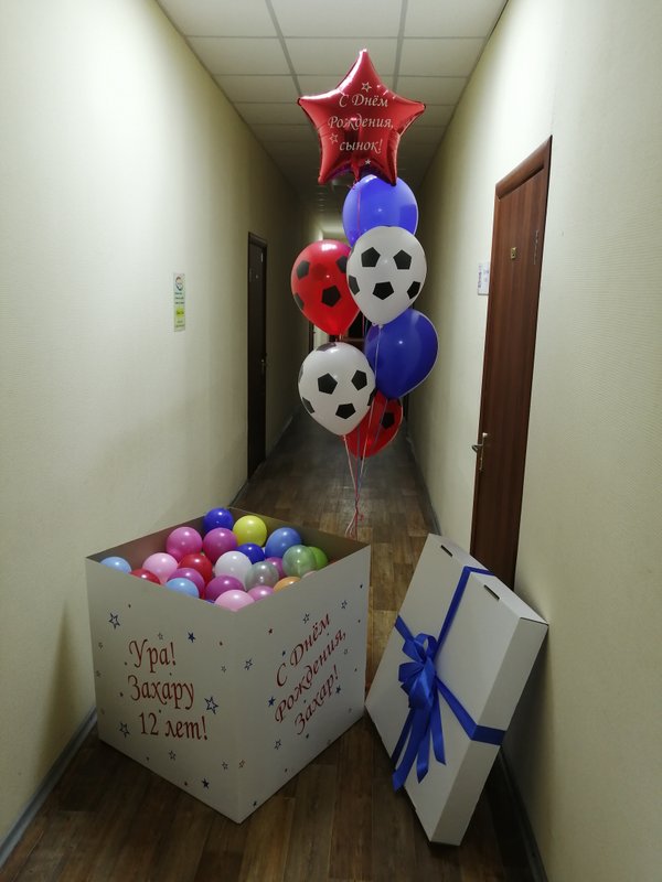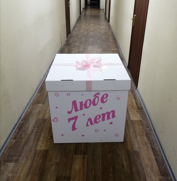 Как говорилось в одной передаче: «А теперь черный ящик»… У нас здесь, если быть точнее, то коробка. При этом цвет не обязательно черный. Для того, чтобы сделать коробку особенной, на нее наносят индивидуальную надпись, плюс наполнение также может быть любым. Кроме шаров, туда также кладут подарки, игрушки, сладости, а иногда даже залазят туда сами. Так что то, «что лежит в «черном ящике», решать только вам.