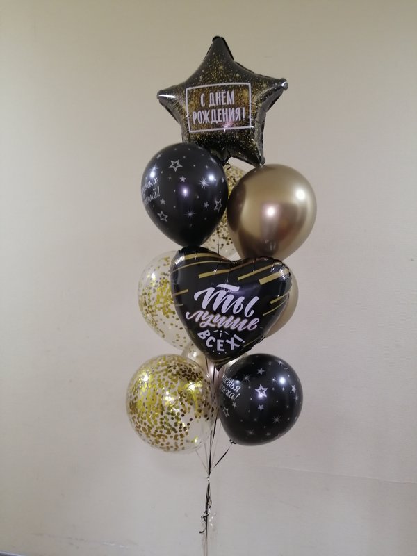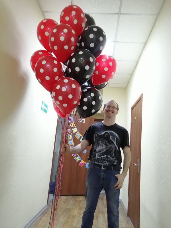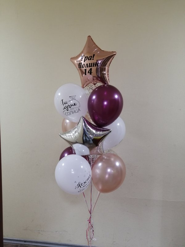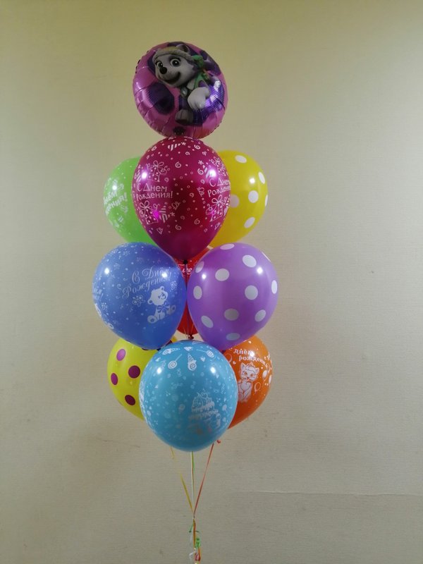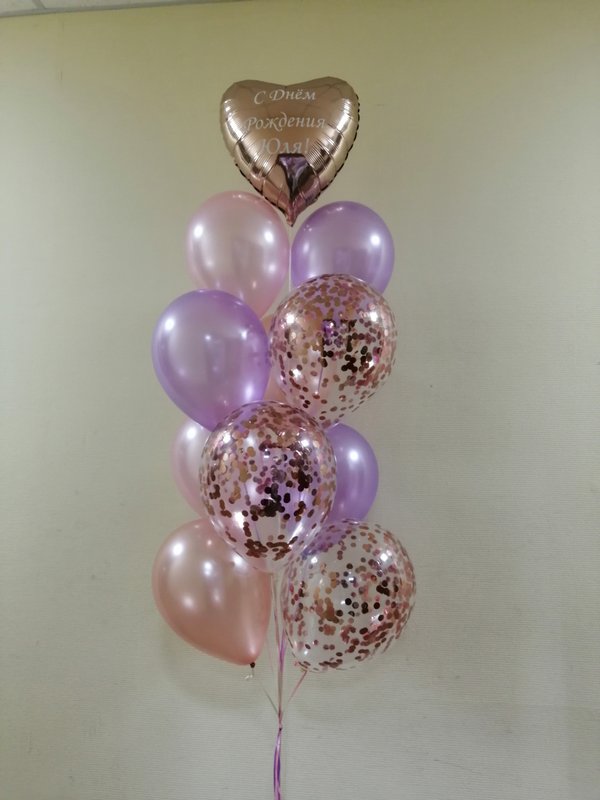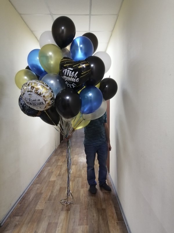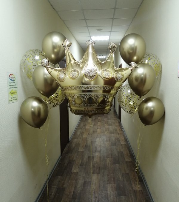 Чем интересно данное фото? Просто на нем присутствуют разные виды и размеры шаров. Видно, чем хром отличается от шара пастель, как выглядят шары с конфетти. Также визуально четко видно насколько шар 24 дюйма отличается от обычной 12ки (и сколько в него может уйти гелия).