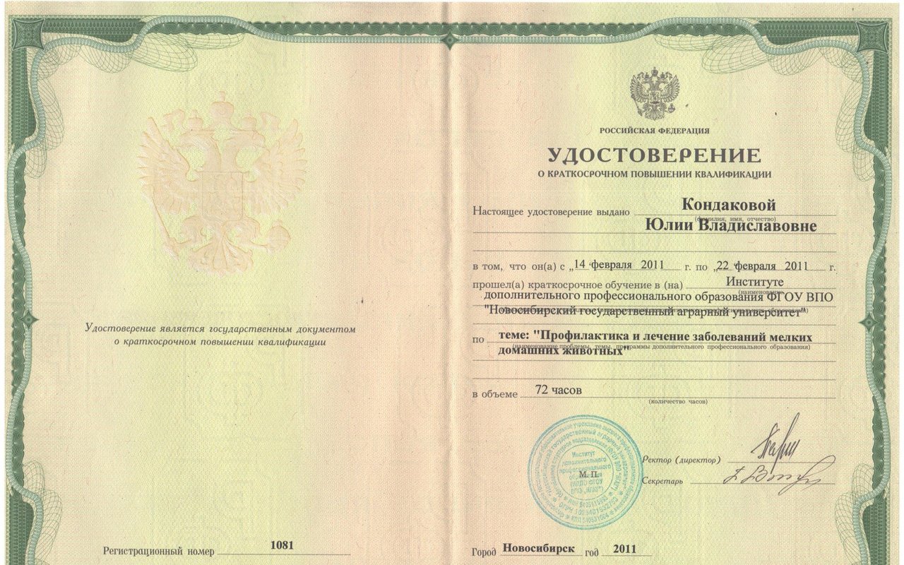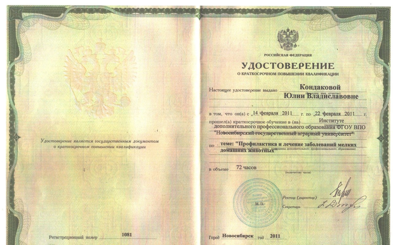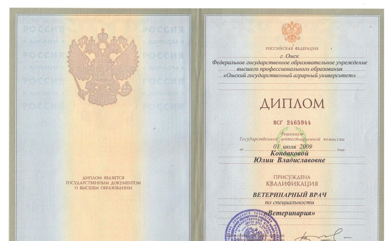 Места работы ветеринара Юлии Владиславовны Кондаковой