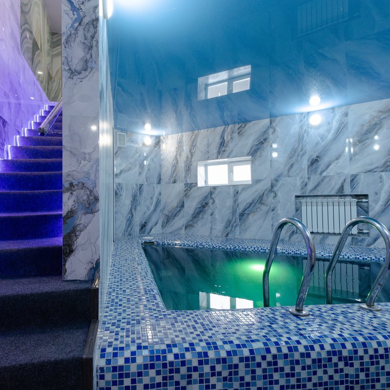 К вашим услугам 4 тематических банных номера, оборудованных современными парными, большими и тёплыми бассейнами, уютными зонами отдыха, телевизором, музыкальным оборудованием и цветомузыкой. 8 гостиничных номеров встретят вас благоухающим комфортом, теплотой и уютом.