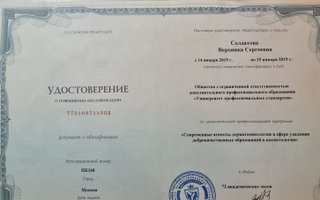 2019 — Дополнительная профессиональная подготовка по программе "Современные аспекты в дерматоонкологии в сфере удаления доброкачественных образований в косметологии"