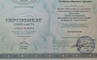 2019 — ЧОУ ДПО Центр инновационных образовательных технологий "Профи" - специальность Косметология