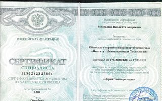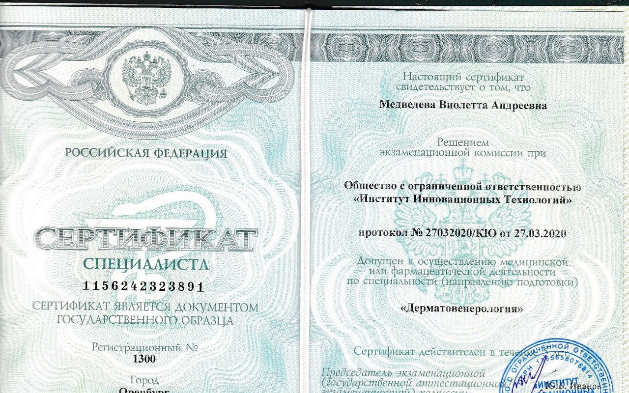 2020 — Институт инновационных технологий г. Оренбург, курс "Дерматовенерология"