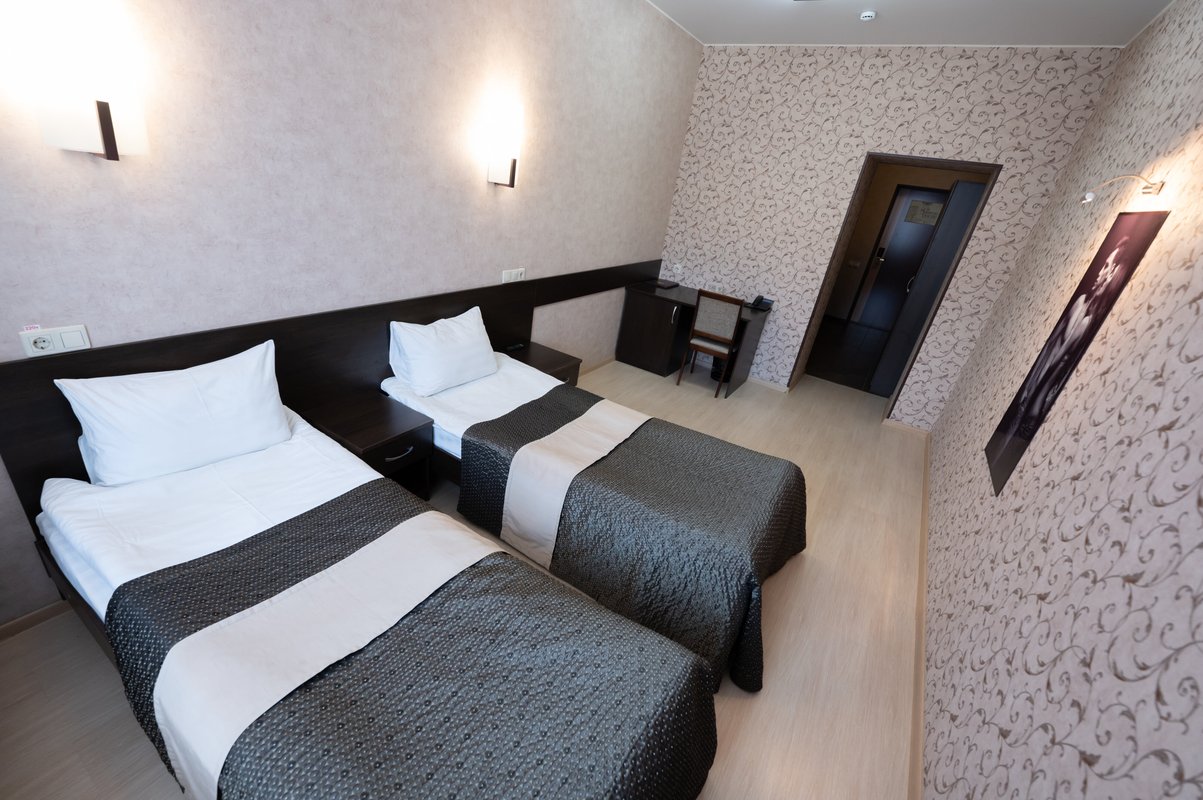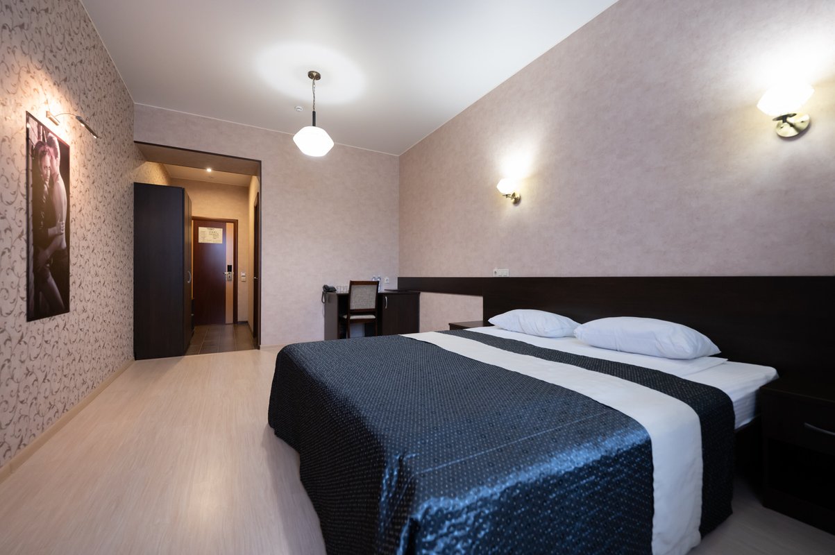 Здесь вы сможете выбрать и забронировать комфортный для вас номер для проживания в соответствии с вашими привычками и пожеланиями. К услугам гостей отеля — семейный люкс с двумя комнатами и дизайнерским ремонтом, двухэтажный пентхаус в стиле хай-тек, черно-белый номер категории “люкс”. Вы сможете поселиться в улучшенном стандарте или номере категории “стандарт”.