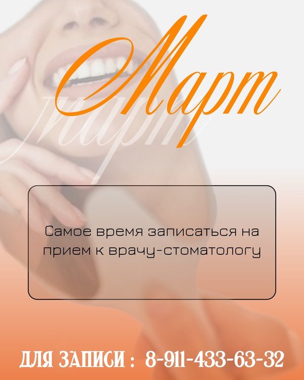 Март быстро уходит, а вместе с ним и возможность записаться к нам! ⏳ Не упустите шанс обрести ту самую красивую улыбку, о которой вы мечтаете. В нашей клинике мы предоставляем высококачественные услуги, подбирая индивидуальный подход к каждому клиенту. У нас работают профессионалы с большим опытом, которые помогут вам. Записывайтесь прямо сейчас — время уходит, а мест становится всё меньше! Не дайте марту пройти мимо вас, воспользуйтесь возможностью преобразиться. Звоните, чтобы узнать подробности. Мы ждём вас для создания вашей идеальной… — Читать дальше