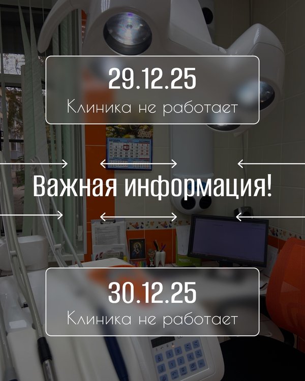 Уважаемые пациенты! 29 и 30 декабря клиника не работает! Поздравляем с наступающим праздником! Пусть 2026 год принесёт здоровье, счастье и успех. Заботьтесь о себе и близких! ️ Ждем вас у нас в новом году! — поддержим ваше здоровье! С наступающим!