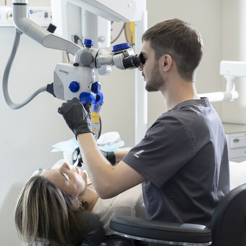 Наши доктора видят всё! Многократное увеличение микроскопом корневых каналов позволяет учитывать малейшие...