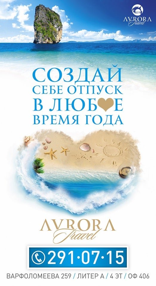 Зачастую планирование отпуска для большинства людей представляется сложным и скучным процессом. Организация предлагает отбросить груз ненужной суеты и начать готовиться к поездке. Все сложности, связанные с перелетами, местами проживания и документами, компания решает сама. Кроме того, значительным преимуществом предоставленного туристической компанией Avrora travel тура будет являться существенно более низкая цена за комплексную услугу по сравнению с покупкой каждой услуги по отдельности.