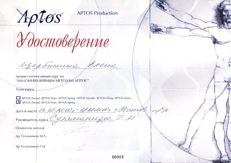 2010 — Прошла интенсивный курс по «Малоинвазивным методам АПТОС»