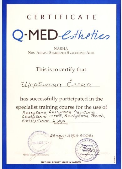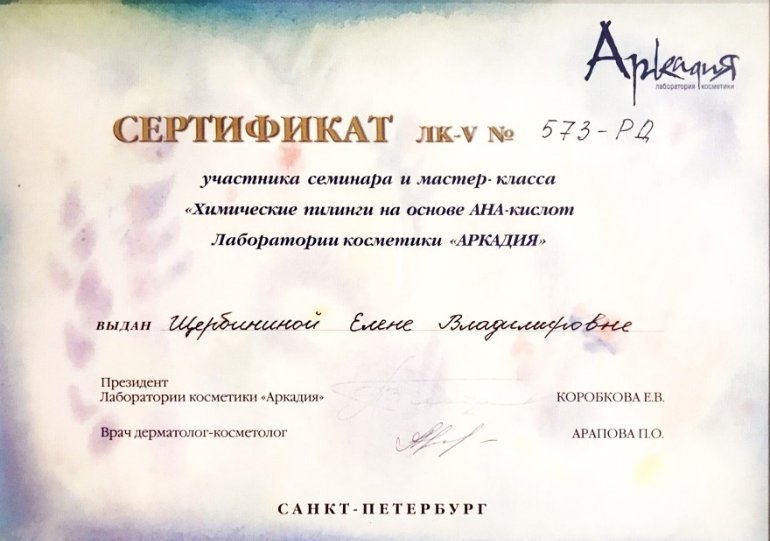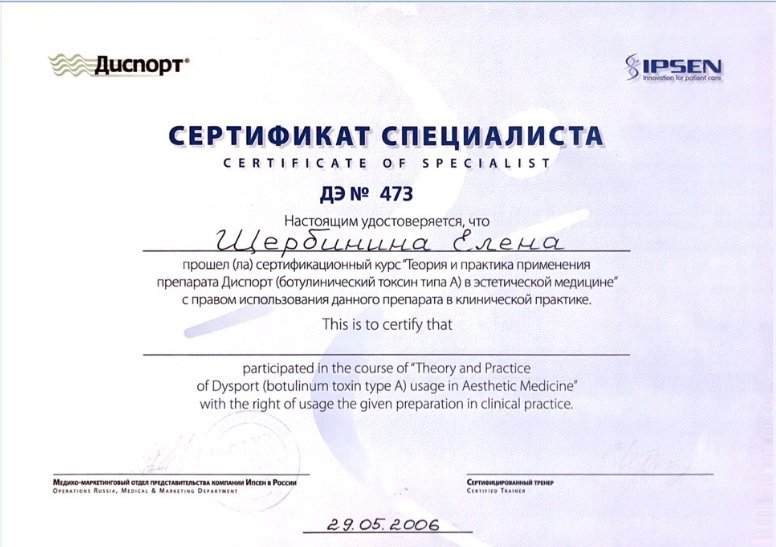 - Есть ли у Щербининой Елены Владимировны необходимые сертификаты?