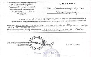 1997 — Ростовский государственный медицинский институт (Аспирантура по специализации Урология)