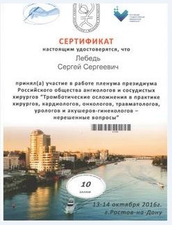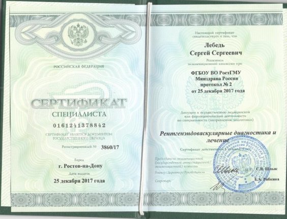2017 — Врач по рентгенэндоваскулярным диагностике и лечению. МБУЗ ГБСМП г. Ростова-на-Дону