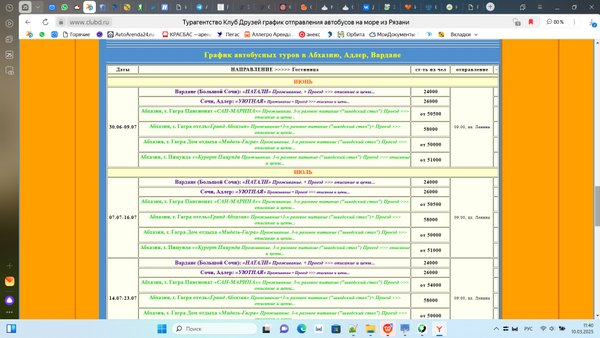 Дорогие туристы! Началось бронирование и продажа на автобусные туры в АБХАЗИЮ,АДЛЕР, ВАРДАНЕ. Продолжительность 10 дней (на море 8 дней\7 ночей) Даты отправления: 30.06.2025; 07.07.2025;14.07.2025; 21.07.2025;28.07.2025 04.08.2025; 11.08.2025; 18.08.2025; 25.08.2025 01.09.2025 цены от 24000руб. Таблица с датами выезда в Абхазию внизу страницы сайта: